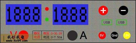 设计了一个0-30V 0-7.5A可调稳压实验电源面板